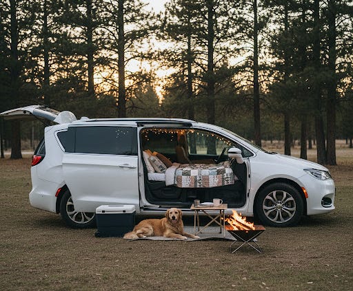 But for me, I like the idea of traveling long distance pulling over at roadside parks and taking a rest or nap in the bed of the minivan.