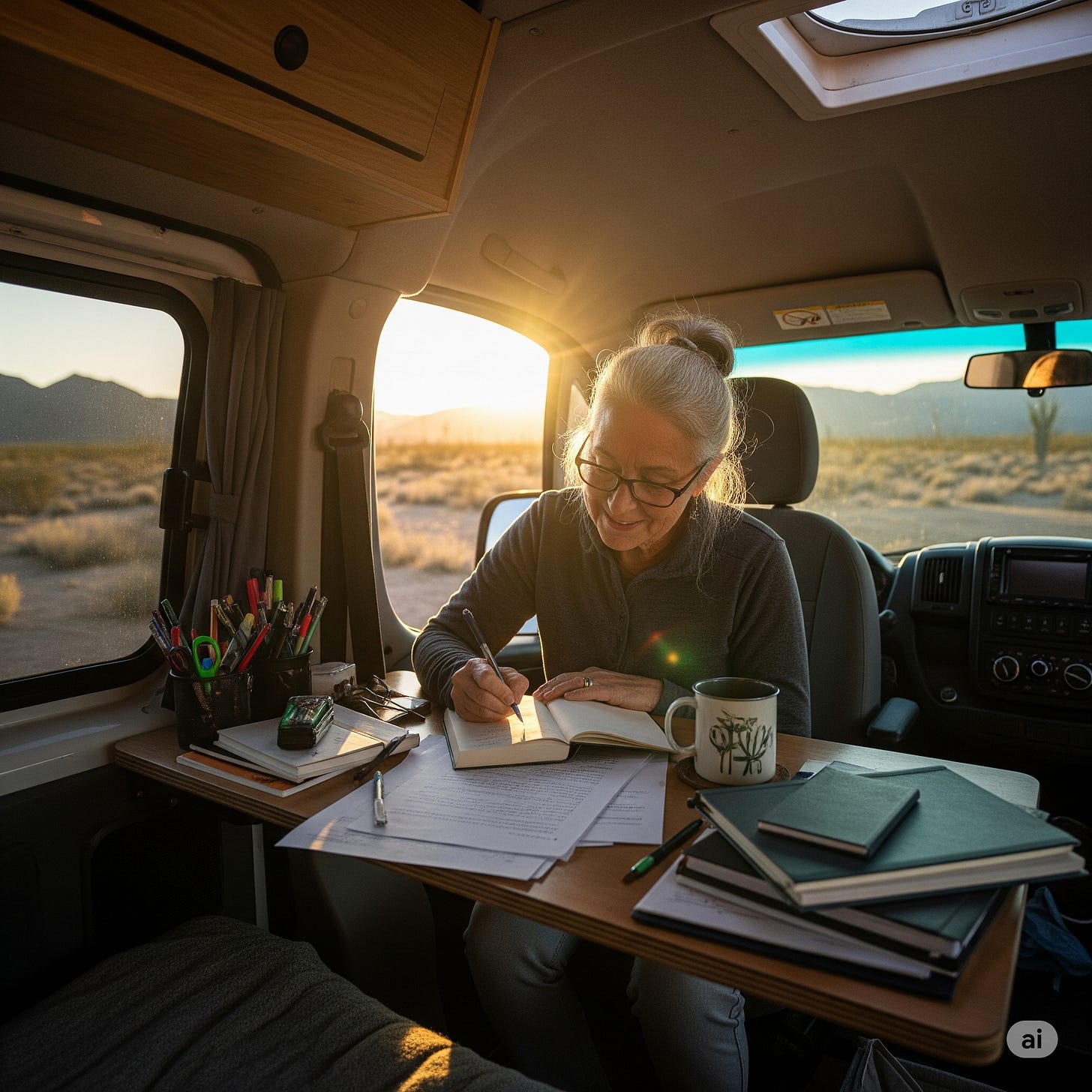 Living and writing in my camper van is my intentional choice, but every inch of space has to be optimized for both creativity and comfort. The fewer possessions I own, the happier I am. Rebecca, my friend, insists on removing an item for every new one brought in.